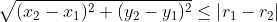 두 원의 중심의 사이의 거리가 |r1 - r2| 보다 작거나 같을 경우이다.